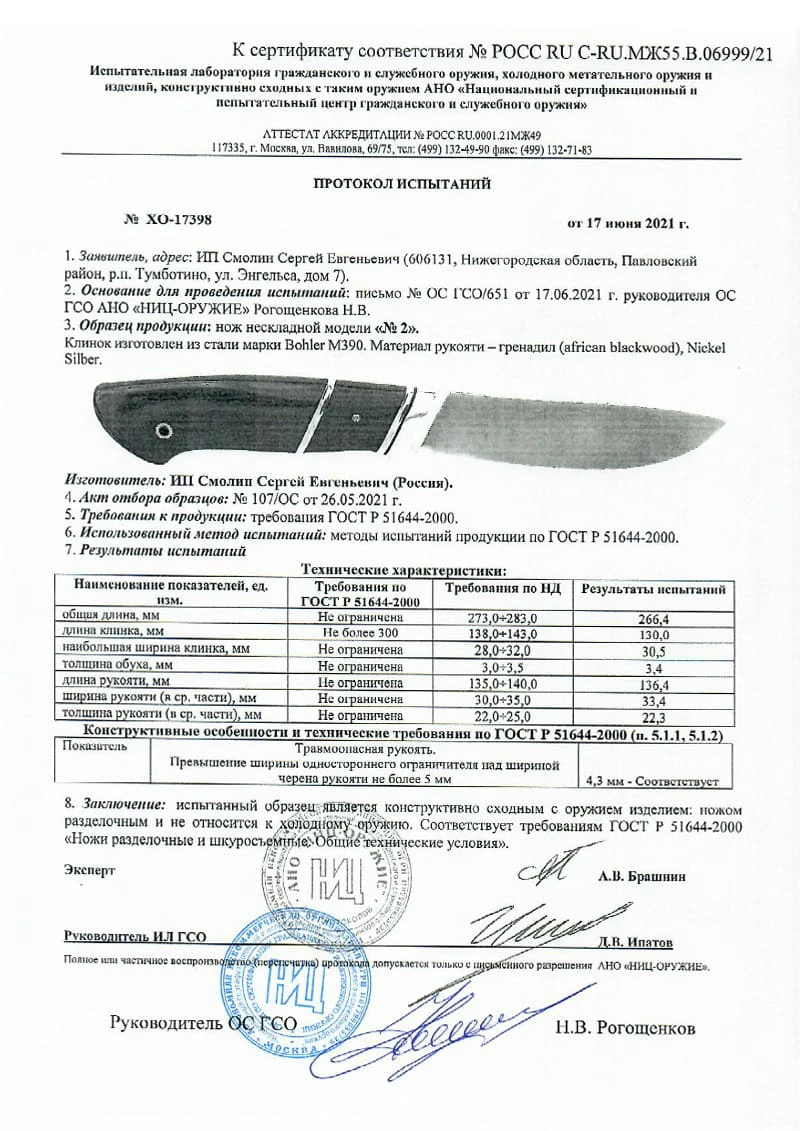 - Длина клинка 130 мм